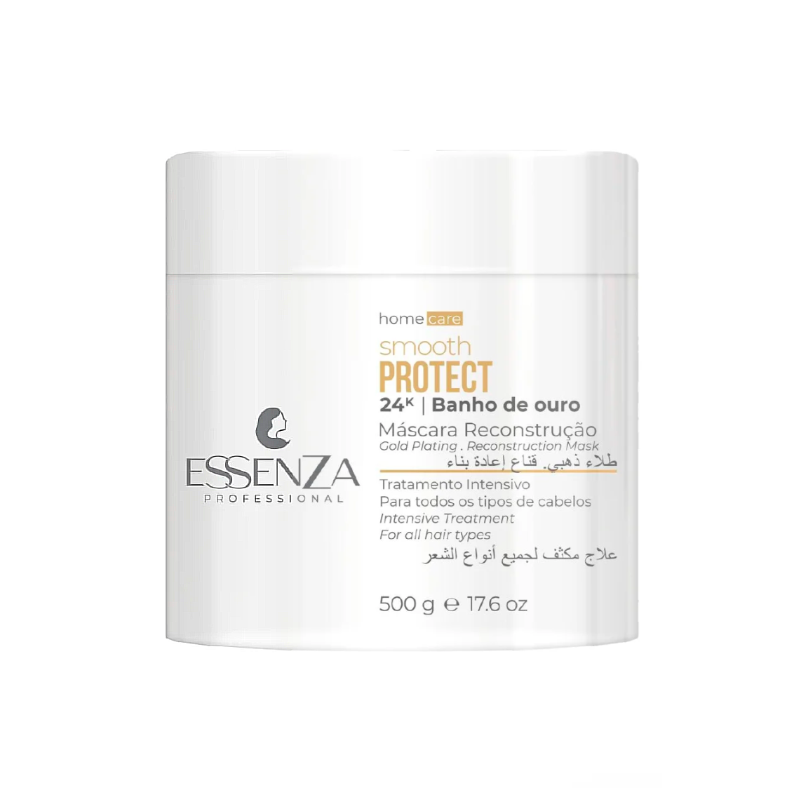 A Máscara de Reconstrução Intensiva Banho de Ouro Essenza Smooth Protect foi desenvolvida para restaurar profundamente os fios danificados, devolvendo força, brilho e maciez desde a primeira aplicação.